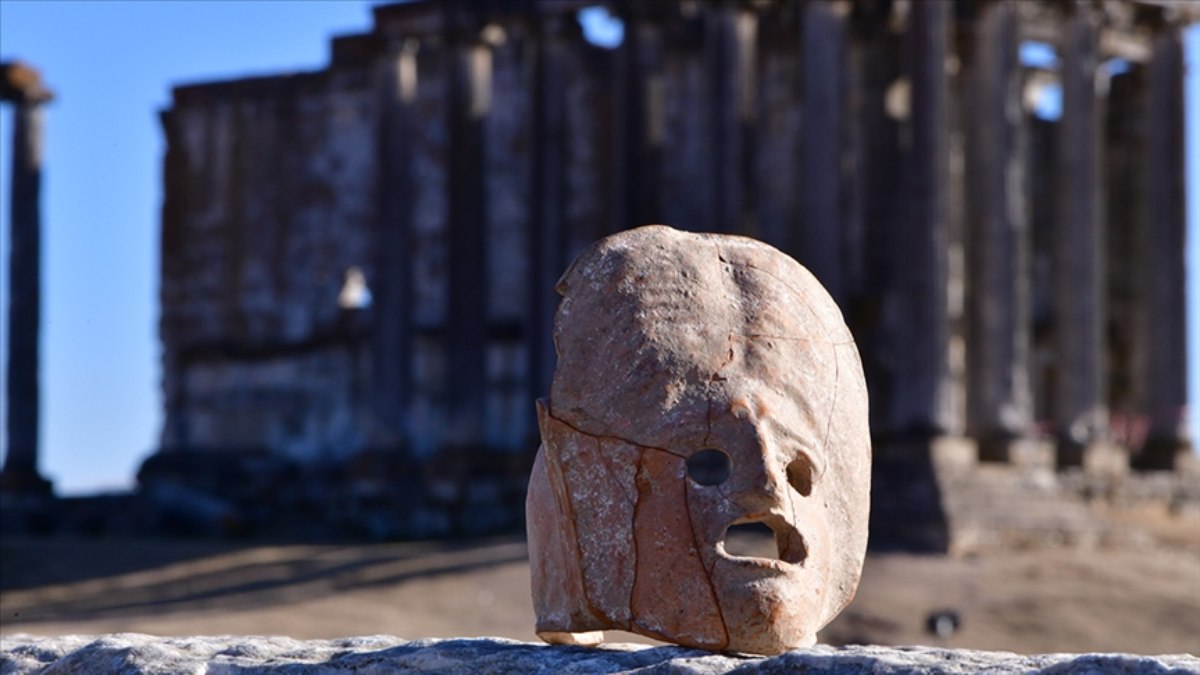 Aizanoi'de anıtsal kapı ile 2 bin yıllık tiyatro maskı bulundu