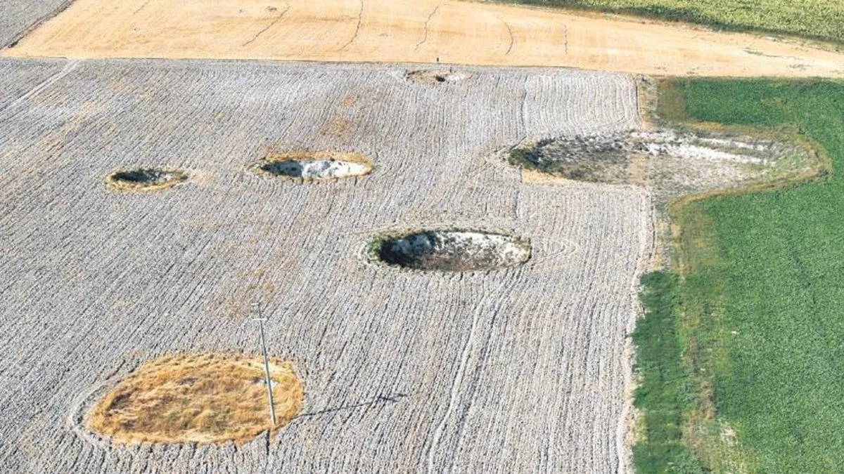 Konya’nın Karapınar ilçesinde çap ve derinlikleri farklı 100’den fazla çöküntünün olduğu, tarım arazilerinin bulunduğu alanın bazı yerlerinde iki obruk arası 5 metreye kadar düşüyor. Obruklar, yeraltında zamanla çözünen kireç taşlarının boşluk oluşturması ve zeminin çökmesiyle oluşuyor. Konya Ovası’nda iklim değişikliği, kuraklık ve kontrolsüz yeraltı su kullanımıyla her geçen gün sayıları fazlalaşan obruklar, tedirginliği artırıyor. Obruk oluşumunun son yıllarda hızla arttığı Karapınar ilçesinin kuzeybatısında yer alan Reşadiye Mahallesi sınırları içinde bulunan Eşeli Yaylası’ndaki tarlalarda çok sayıda obruk oluşumu gözleniyor. İki obruk arasının 5 metreye kadar düştüğü, çap ve derinlikleri farklı 100’den fazla çöküntünün olduğu yerde havadan çekilen fotoğraf karesine 24 obruk giriyor. DHA