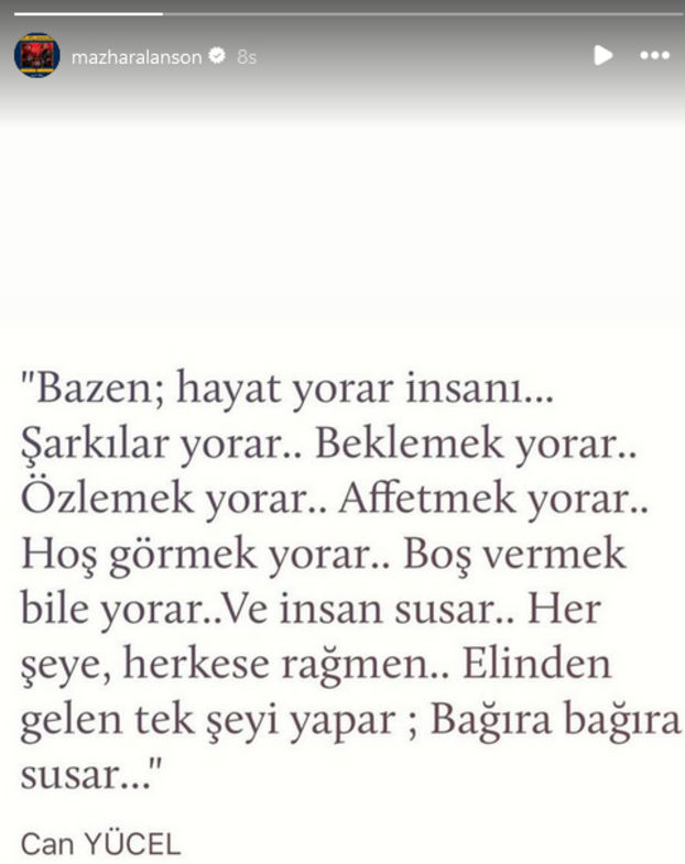 Mazhar Alanson bu kez de Can Yücel’in ‘Bazen; Hayat Yorar İnsanı’ şiirini paylaşarak, duygularını dile getirdi: