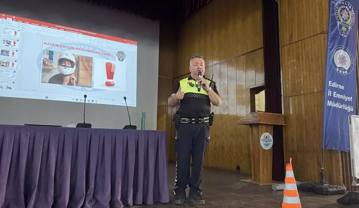 Edirne Emniyet Müdürlüğünce motosikletli kuryelere yönelik “Kaskınla Yol Ver Hayata” adlı eğitim verildi.